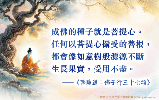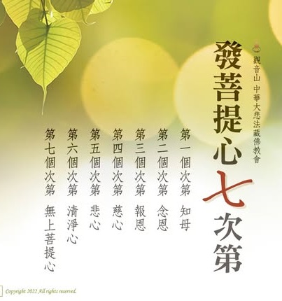 發菩提心成學佛修行非常重要的環節。慈悲 龍德上師開示:「一個人如果生起菩提心,再去做事、去修行,就算只成做掃地工作,也成功德無量!」