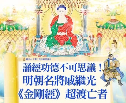 明朝名將戚繼光每日持誦《金剛經》。一日,他的部屬往生了,該部屬的妻子前來拜見,說明亡夫囑付,請將軍為其誦一部《金剛經》超渡他。