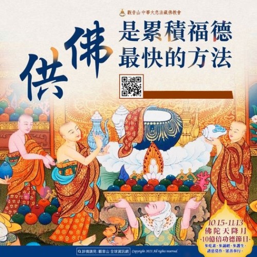 偉大佛陀開示:「若過去生,曾於三寶福田,種很小的善根,將來可得無量的果報。」若要修積廣大福德,於三寶門中修來的 福田 最殊勝。佛殿壇城為諸佛神聖於世間安住之勝位,恭設一座莊嚴殊勝的壇城,將攝受廣大眾生,生起對佛法的感動及好樂隨學心,令善根益漸增長。《百論》云:「福報滅時,離所樂事。」這說的是什麼呢?言簡意賅地說,就是沒有福報,一切安樂就都將離你遠去。觀音山住持──慈悲 龍德上師開示:「所以我們要懂得培福、惜福之法,重視累積福報資糧,只有福報具足,才能改變命運。」