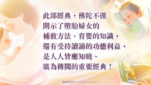 *此部經典,佛陀不僅開示了墮胎婦女的補救方法、育嬰的知識,還有受持讀誦的功德利益,是人人皆應知曉、廣為傳閱的重要經典!