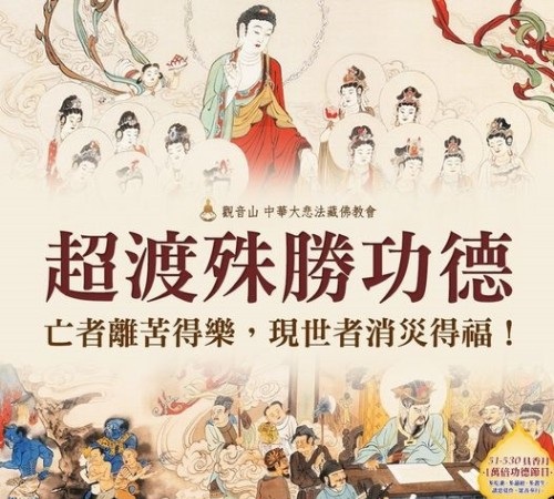 觀音山 中華大悲法藏佛教會長期舉辦超渡法會,讓您可以用家中祖先先亡、流產水兒、地基主、冤親債主、往生寵物的名義,恭立「超薦蓮位」。