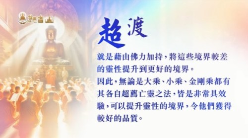 「超渡」就是藉由佛力加持,將境界較差的靈性提升到更好的境界。因此,無論是大乘、小乘、金剛乘都有其各自超薦亡靈之法,皆是非常具效驗,可以提升靈性的境界,令他們獲得較好的品質。慈悲的 龍德上師在《金剛心總持論》一書中講到:「有德為神,德少為鬼。」如果活著時沒有修行及累積福報,就會投胎到鬼道;而業障重者甚至會墮入地獄受苦刑。
